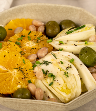 È il momento di portare in tavola la nostra Insalata di Finocchio, Arancia e Fagioli. Buon appetito!