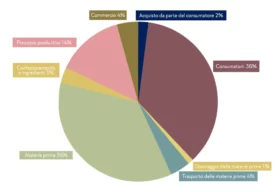 Le materie prime, compresi lo stoccaggio, l' imballaggio e il trasporto, rappresentano la percentuale più alta delle emissioni di CO2e del prodotto, circa il 44%. Il contributo dei consumatori (spesa, conservazione a casa, preparazione, pulizia dei piatti) è di circa il 36%.