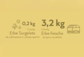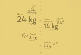 La “e” sta per equivalenti, cioè equivalenti di CO2. In questo modo si riassumono tutti gli altri tipi di gas a effetto serra, come il metano, rendendoli comparabili. Per semplificare al massimo il confronto tra i prodotti, indichiamo l' impronta di CO2e in g CO2e/100g per l' intero prodotto e ci asteniamo dal fornire la composizione esatta dei dati.